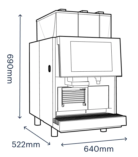 A compact and stylish tabletop machine, delivering premium Lavazza coffee with a tap of the touch screen interface.